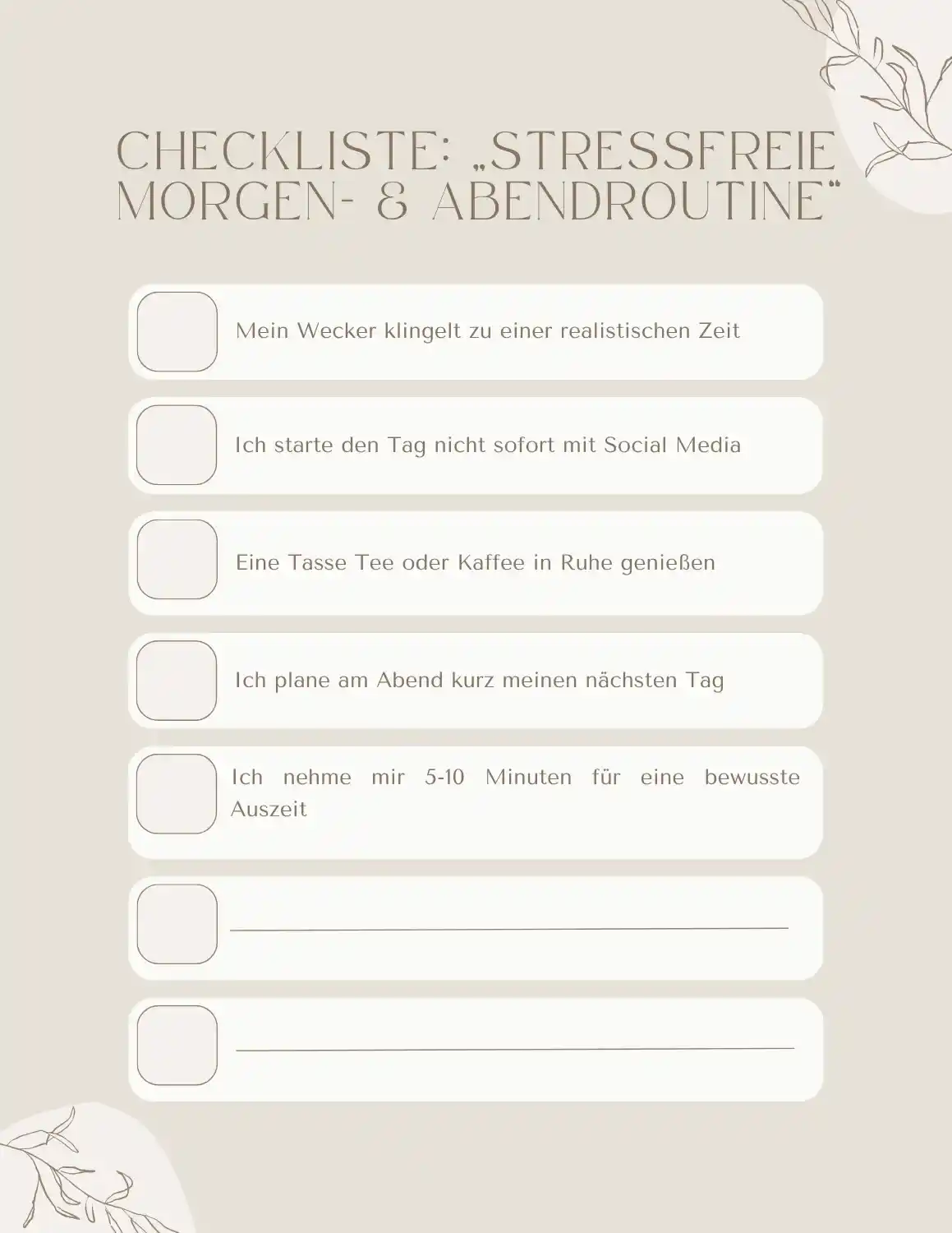 Mit wertvollen Impulsen, praktischen Tools und einem starken Fokus auf Selbstfürsorge und Zeit für dich – ganz ohne Druck.